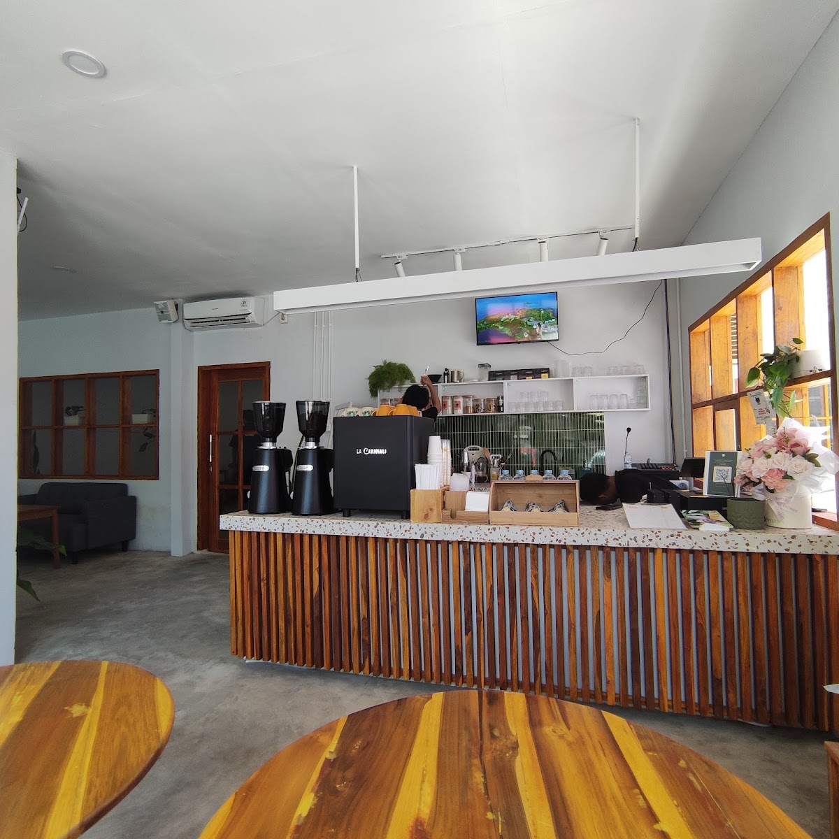 Coffe shop yang terletak di pusat kota Kendari dengan akses yang mudah dari berbagai penjuru kota, meskipun terletak dipusat kota tapi lokasinya tidak pinggir jalan sekali ji jadi masih bisa dapat suasana yang tenang dan nyaman juga. Suasanan tenang, desain interior menarik yang memberi kesan hangat dan mengundang, pencahayaan lembut dan musik yang diputar juga volumenya cocok untuk bersantai dan bekerja. Menu yang ditawarkan beragam ada kopi, non kopi dan juga ada menu signature lallo yang wajib dicoba dengan biji kopi unggulan dan tentunya harga yang terjangkau, untuk makanan saat ini lallo baru menyediakan menu rice bowl onigiri tuna mayo. Pelayanan ramah, responsif dan gercep. Fasilitas, lengkap mulai dari halaman parkir yang memadai untuk mobil dan motor, wifi cepat, colokan yang tersedia dibeberapa meja dan yang tak kalah penting toiletnya bersih.